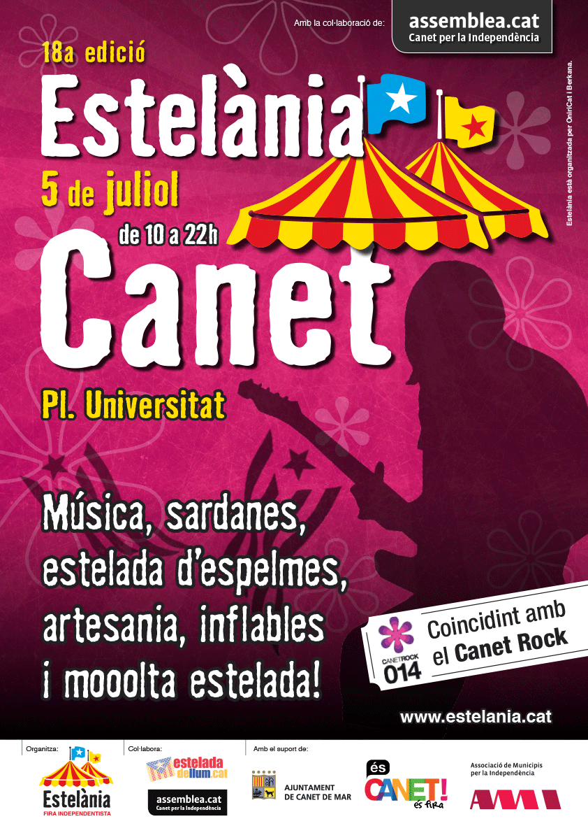 21:30h Encesa de l’Estelada d’espelmes. Organitzat conjuntament amb Assemblea-Canet per la Independència.